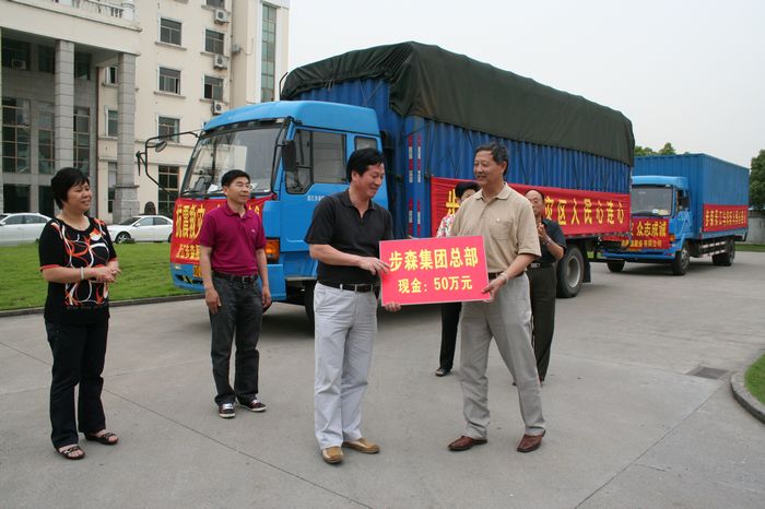 步森集团总部向四川地震灾区捐款捐物,与灾区人民心连心...